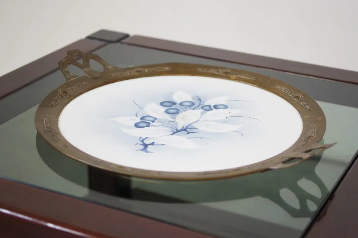 Il vassoio è in ottime condizioni vintage, con una leggera usura sull’ottone coerente con l’età, che ne aumenta il carattere e l’autenticità. La superficie in ceramica rimane vivida e intatta.