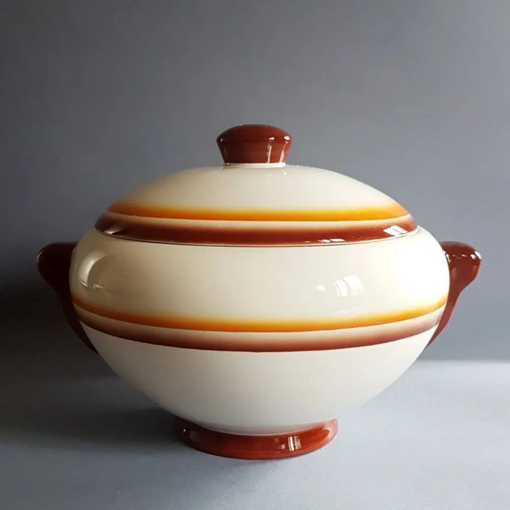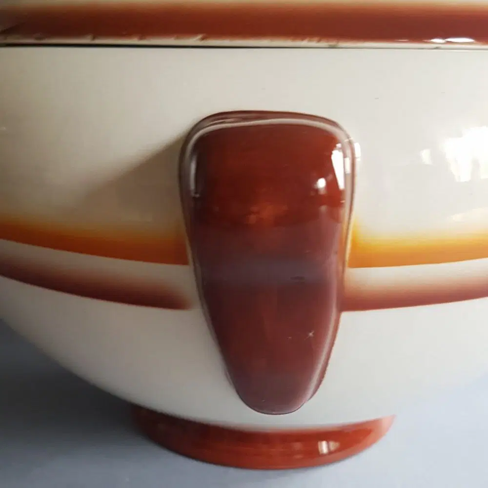 Zuppiera da collezione in terraglia aereografata prodotta dalla manifattura Galvani Pordenone, anni ’30.